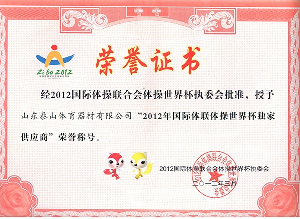 2021世界体操锦标赛荣誉证书